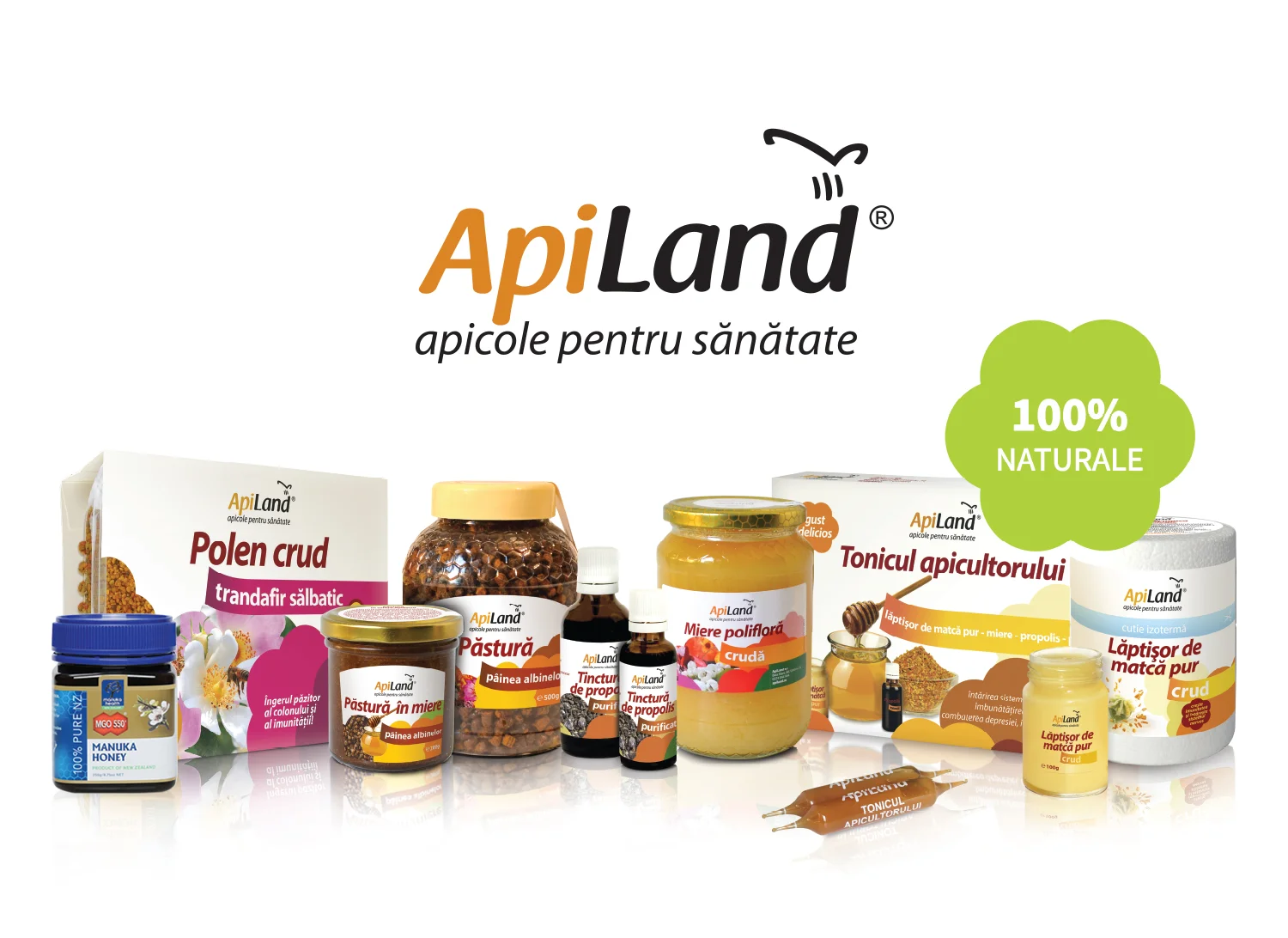 ApiLand îţi pune la dispoziţie cea mai variată gamă de produse apicole din România, pentru ca tu să te poți bucura de efectele terapeutice extraordinare ale acestora. În cadrul magazinului online www.apiland.ro şi a celor peste 500 de magazine partenere vei găsi: lăptişor de matcă pur, polenuri crude, tonice apicole, păstură, miere crudă, propolis, miere de Manuka şi şi alte produse din gama Manuka Health, bomboane cu miere şi săpunuri naturale.